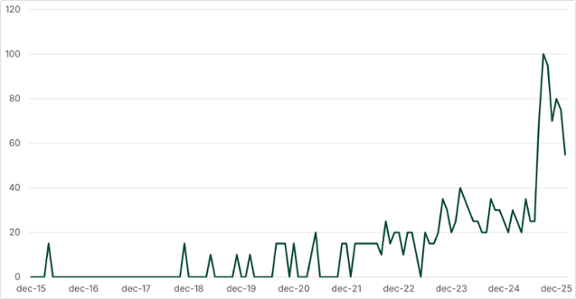 Search results for ‘steward ownership’ increased since early 2022, peaking in late 2025.¹² This signals increasing curiosity for the concept.